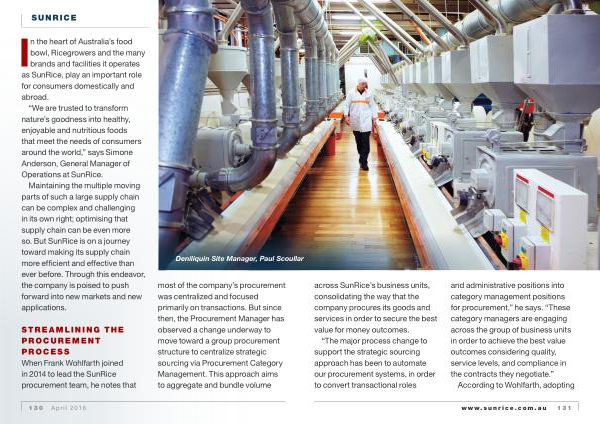 FOOD r across SunRice ’ s business units , consolidating the way that the company procures its goods and services in order to secure the best value for money outcomes .