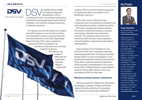 DSV is a global Danish freight and logistics enterprise established in 1976 . In a relatively short time , the company has become successful by taking giant steps toward vertical integration , with a growth strategy of acquiring competing companies .