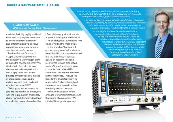 , 2013 , Klaus Buchwald became Vice President Corporate Supply ohde & Schwarz GmbH & Co . KG . In this position , he is responsible global end-to-end Supply Chain for all business units .