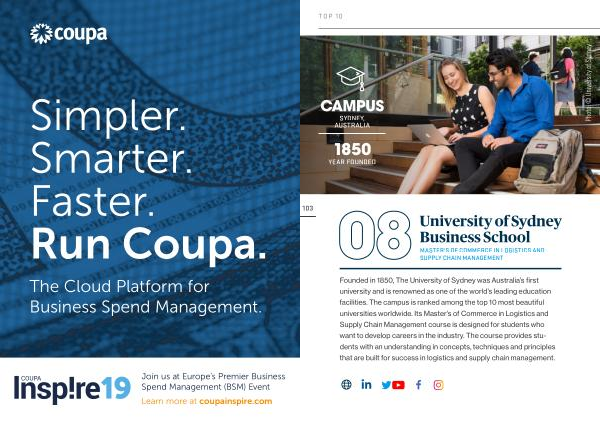 Founded in 1850 , The University of Sydney was Australia ’ s first university and is renowned as one of the world ’ s leading education facilities . The campus is ranked among the top 10 most beautiful universities worldwide . Its Master ’ s of Commerce in Logistics and Supply Chain Management course is designed for students who want to develop careers in the industry . The course provides students with an understanding in concepts , techniques and principles that are built for success in logistics and supply chain management .