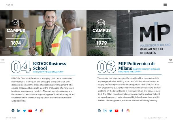 The course has been designed to provide all the necessary skills to young graduates seeking a successful international career in supply chain and procurement management . The 12-month masters programme is taught primarily in English and seeks to instruct students on the latest topics in the supply chain and procurement field . The Milan-based school provides an end-to-end portfolio of services in research , education and high-level consultancy within the field of management , economic and industrial engineering . www . supplychaindigital . com