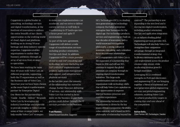 Our Motto for the partnership is “ Guide – Enable – Deliver ”. We guide Volvo Cars by leveraging our industry knowledge and expertise to provide insights to Volvo Cars on some of their strategic topics , we help enable Volvo Cars ’ strategies to make sure implementations can accelerate , and we strive to deliver current services as well help in transforming its IT landscape into a future proof and agile IT environment .