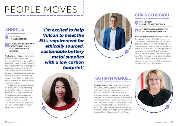 Kathryn Wengel , Executive Vice President and Chief Global Supply Chain Officer at Johnson & Johnson , has joined Labcorp ’ s board of directors as an independent member . Labcorp is a global life sciences company . “ Kathy brings a wealth of experience managing complex healthcare organisations and developing globally diverse teams ,” said Adam Schechter , Labcorp ’ s chairman and CEO . “ We look forward to benefitting from her unique perspective .” Wengel placed first in our inaugural Top 100 Women in Supply Chain . supplychaindigital . com 13