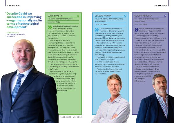 Snam since December 2018 and is Senior Vice President Corporate & Group Supply Chain , leading Procurement and Material Management .