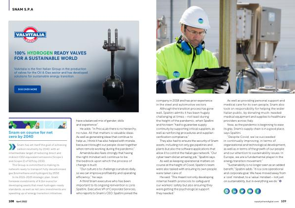 Now , as the pandemic is beginning to ease its grip , Snam ’ s supply chain is in a good place , says Spaltini .