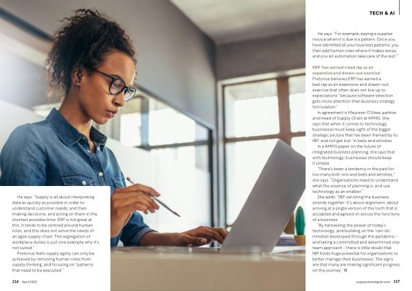 “ By harnessing the power of today ’ s technology , and building on the ‘ can-do ’ mindset developed through the pandemic - and taking a committed and determined one team approach - there is little doubt that IBP holds huge potential for organisations to better manage their businesses . The signs are that many are making significant progress on the journey .” supplychaindigital . com 117