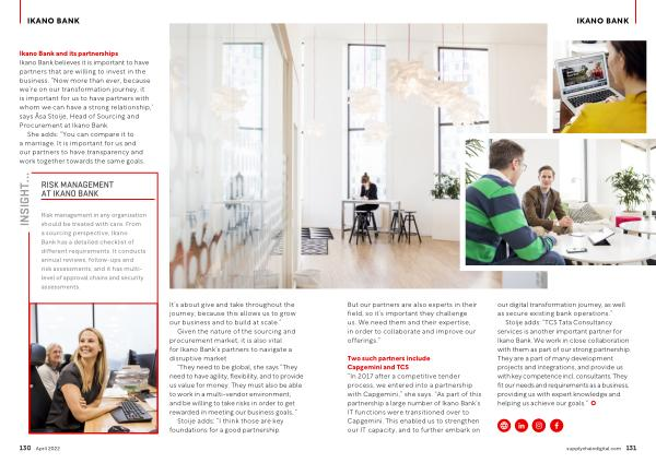 Ikano Bank and its partnerships Ikano Bank believes it is important to have partners that are willing to invest in the business . “ Now more than ever , because we ’ re on our transformation journey , it is important for us to have partners with whom we can have a strong relationship ,” says Åsa Stoije , Head of Sourcing and Procurement at Ikano Bank .