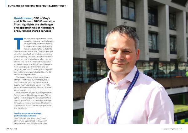 David Lawson , CPO of Guy ’ s and St Thomas ’ NHS Foundation Trust , highlights the challenges and opportunities of healthcare procurement shared services
