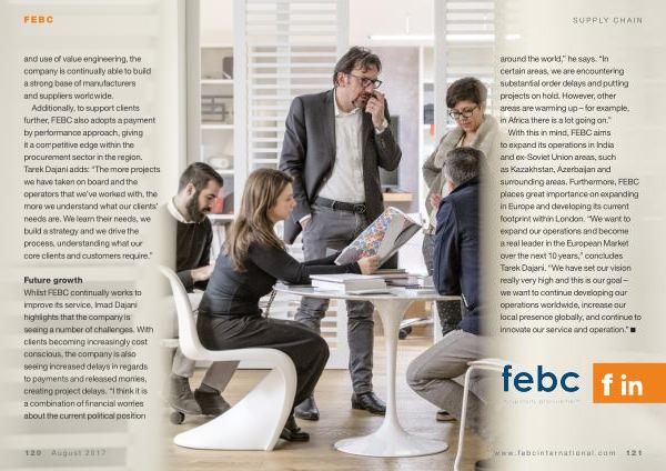 Future growth Whilst FEBC continually works to improve its service , Imad Dajani highlights that the company is seeing a number of challenges . With clients becoming increasingly cost conscious , the company is also seeing increased delays in regards to payments and released monies , creating project delays . “ I think it is a combination of financial worries about the current political position