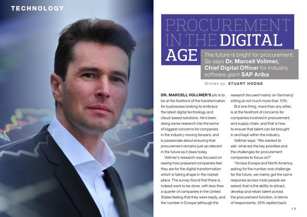 DR . MARCELL VOLLMER ’ S job is to be at the forefront of the transformation for businesses looking to embrace the latest digital technology and cloud-based solutions . He ’ s been doing some research into the some of biggest concerns for companies in the industry moving forward , and is passionate about ensuring that procurement remains just as relevant in the future as it does today .