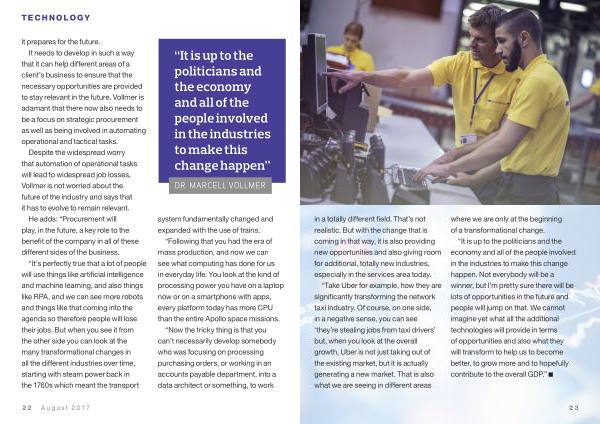 “ It is up to the politicians and the economy and all of the people involved in the industries to make this change happen . Not everybody will be a winner , but I ’ m pretty sure there will be lots of opportunities in the future and people will jump on that . We cannot imagine yet what all the additional technologies will provide in terms of opportunities and also what they will transform to help us to become better , to grow more and to hopefully contribute to the overall GDP .”