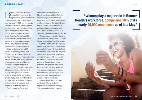 “ Women play a major role in Banner Health ’ s workforce , comprising 76 % of its nearly 49,900 employees as of late May ”