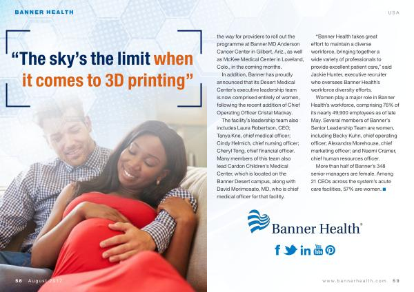 Women play a major role in Banner Health ’ s workforce , comprising 76 % of its nearly 49,900 employees as of late May . Several members of Banner ’ s Senior Leadership Team are women , including Becky Kuhn , chief operating officer ; Alexandra Morehouse , chief marketing officer ; and Naomi Cramer , chief human resources officer .