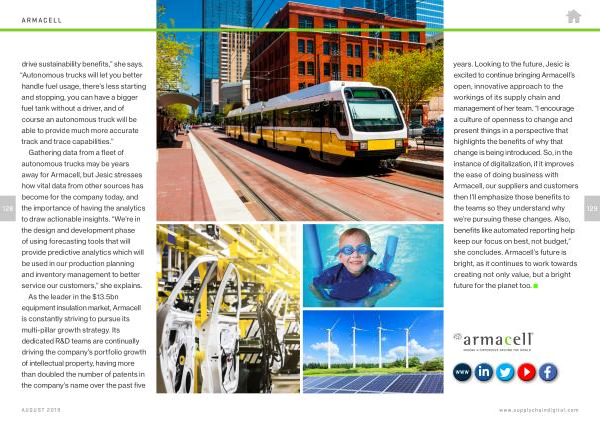 years . Looking to the future , Jesic is excited to continue bringing Armacell ’ s open , innovative approach to the workings of its supply chain and management of her team . “ I encourage a culture of openness to change and present things in a perspective that highlights the benefits of why that change is being introduced . So , in the instance of digitalization , if it improves the ease of doing business with Armacell , our suppliers and customers then I ’ ll emphasize those benefits to the teams so they understand why we ’ re pursuing these changes . Also , benefits like automated reporting help keep our focus on best , not budget ,” she concludes . Armacell ’ s future is bright , as it continues to work towards creating not only value , but a bright future for the planet too .