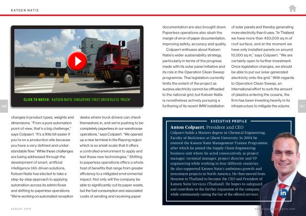 Colpaert enthuses about Katoen Natie ’ s wider sustainability strategy , particularly in terms of the progress made with its solar panel initiative and its role in the Operation Clean Sweep programme . Thai legislation currently limits the extent of the project as surplus electricity cannot be offloaded to the national grid , but Katoen Natie is nonetheless actively pursuing a furthering of its recent 1MW installation of solar panels and thereby generating more electricity than it uses . “ In Thailand we have more than 450,000 sq m of roof surface , and at the moment we have only installed panels on around 10,000 sq m ,” says Colpaert . “ We are certainly open to further investment . Once legislation changes , we should be able to put our solar-generated electricity onto the grid .” With regards to Operation Clean Sweep , an international effort to curb the amount of plastics entering the oceans , the firm has been investing heavily in its infrastructure to mitigate the volume
