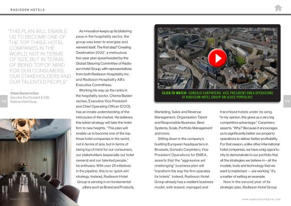 Working his way up the ranks in the hospitality sector , Chema Basterrechea , Executive Vice President and Chief Operating Officer ( COO ), has an innate understanding of the intricacies of the market . He believes this latest strategy will take the hotel firm to new heights . “ This plan will enable us to become one of the top three hotel companies in the world , not in terms of size , but in terms of being top of mind for our consumers , our stakeholders ( especially our hotel owners ) and our talented people ,” he enthuses . With over 25 initiatives in the pipeline , this is no ‘ quick win ’ strategy . Instead , Radisson Hotel Group is zeroing in on fundamental pillars such as Brand and Products ,