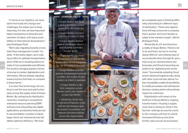 Digitalization will remain at the forefront of Grupo Bimbo ’ s ongoing transformation . Housing a supply chain that is aiming to climb in the Gartner rankings across the world , to the company will look to unlock increased efficiency and drive further value across its processes