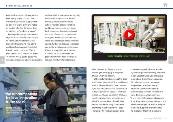 With a determination to lead the field and remain innovative in the healthcare sector , Steward Health Care remains agile as it responds to the latest trends in the supply chain space . “ The back orders are always a problem . We have to ask ourselves how we make sure , with the highest level of prediction , we can deliver the things that we ’ re promising to our customers ,” says Prokopis . “ It ’ s really about deciding