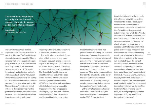 This highly informed method of operating is likely to become ever-more invaluable as supply chains continue to adjust to the new post-COVID-19 world . As market volatility makes formulating a commodity forecast strategy difficult , The Smart Cube ’ s ability to provide insights into fixed and variable costs will be essential . “ I think what ’ s been interesting over the course of the COVID-19 crisis is how well we ’ ve been able to help customers respond to these very immediate and pressing challenges ,” says Abdullah . A natural consequence of close collaboration and far-reaching industry expertise ,