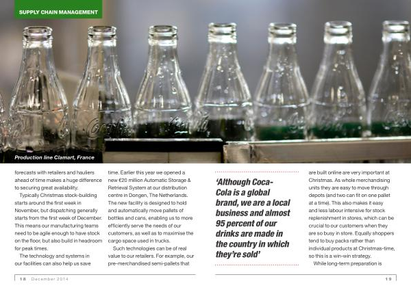‘ Although Coca- Cola is a global brand , we are a local business and almost 95 percent of our drinks are made in the country in which they ’ re sold ’ are built online are very important at Christmas . As whole merchandising units they are easy to move through depots ( and two can fit on one pallet at a time ). This also makes it easy and less labour intensive for stock replenishment in stores , which can be crucial to our customers when they are so busy in store . Equally shoppers tend to buy packs rather than individual products at Christmas-time , so this is a win-win strategy . Caption to the image While long-term preparation is