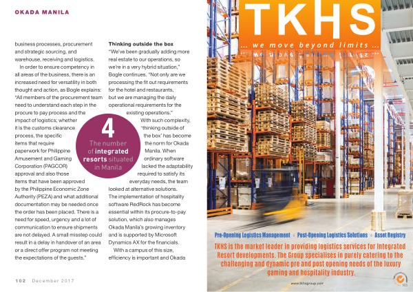 TKHS is the market leader in providing logistics services for Integrated Resort developments . The Group specialises in purely catering to the challenging and dynamic pre and post opening needs of the luxury gaming and hospitality industry .