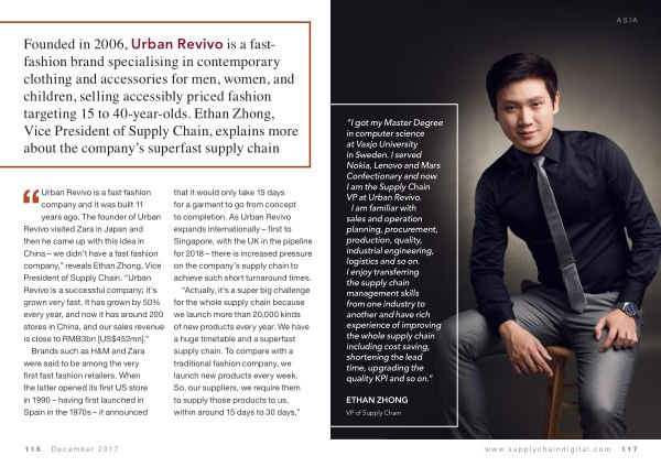 Founded in 2006 , Urban Revivo is a fastfashion brand specialising in contemporary clothing and accessories for men , women , and children , selling accessibly priced fashion targeting 15 to 40-year-olds . Ethan Zhong , Vice President of Supply Chain , explains more about the company ’ s superfast supply chain