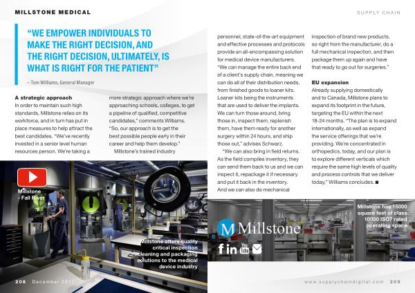 EU expansion Already supplying domestically and to Canada , Millstone plans to expand its footprint in the future , targeting the EU within the next 18-24 months . “ The plan is to expand internationally , as well as expand the service offerings that we ’ re providing . We ’ re concentrated in orthopedics , today , and our plan is to explore different verticals which require the same high levels of quality and process controls that we deliver today ,” Williams concludes .