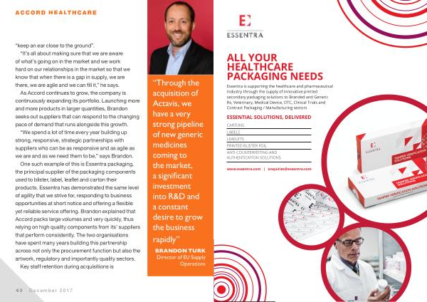 Essentra is supporting the healthcare and pharmaceutical industry through the supply of innovative printed secondary packaging solutions to Branded and Generic Rx , Veterinary , Medical Device , OTC , Clinical Trials and Contract Packaging / Manufacturing sectors