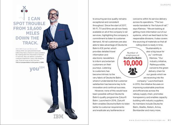 EUROPE to ensuring service quality remains exceptional and consistent throughout . Since the start of 2017 , Wi-Fi , TV and films are all now freely available on all of the company ’ s rail services , highlighting the company ’ s commitment to listen to customer demand . All rail customers are also able to take advantage of Deutsche Bahn ’ s ICE portal , which provides detailed travel information and electronic newsletters to inform and entertain customers on their journeys . Listening to customers has become intrinsic to the very fabric of Deutsche Bahn , where it understands that customer satisfaction has become key to its innovation and continual success .