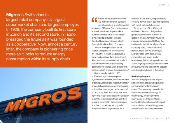 Reducing impact As such a large producer , Migros has committed to reducing energy consumption within its supply chain . “ Two years ago , we adopted a new sustainability strategy . In this strategy , we designed the main topics we thought Migros needed to take action on in terms of sustainability . Unsurprisingly , one area of action was that we wanted