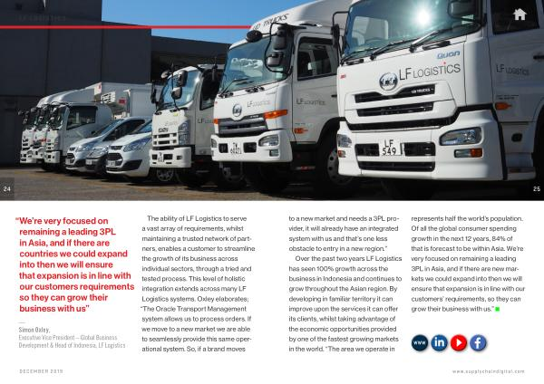 The ability of LF Logistics to serve a vast array of requirements , whilst maintaining a trusted network of partners , enables a customer to streamline the growth of its business across individual sectors , through a tried and tested process . This level of holistic integration extends across many LF Logistics systems . Oxley elaborates ; “ The Oracle Transport Management system allows us to process orders . If we move to a new market we are able to seamlessly provide this same operational system . So , if a brand moves