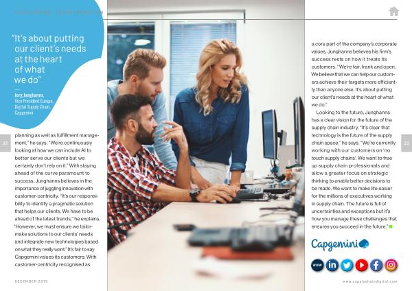 Looking to the future , Junghanns has a clear vision for the future of the supply chain industry . “ It ’ s clear that technology is the future of the supply chain space ,” he says . “ We ’ re currently working with our customers on ‘ no touch supply chains ’. We want to free up supply chain professionals and allow a greater focus on strategic thinking to enable better decisions to be made . We want to make life easier for the millions of executives working in supply chain . The future is full of uncertainties and exceptions but it ’ s how you manage these challenges that ensures you succeed in the future .”