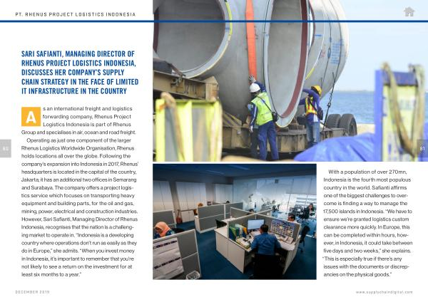 SARI SAFIANTI , MANAGING DIRECTOR OF RHENUS PROJECT LOGISTICS INDONESIA , DISCUSSES HER COMPANY ’ S SUPPLY CHAIN STRATEGY IN THE FACE OF LIMITED IT INFRASTRUCTURE IN THE COUNTRY