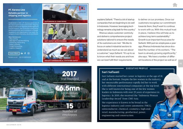 Rhenus values customer-centricity and delivers comprehensive project solutions tailored to ensure the needs of its customers are met . “ We like to focus on select industrial sectors to understand as much as we can about a customer ,” says Safianti . “ It ’ s up to us to know what their needs are and how we can best fulfil their requirements to deliver on our promises . Once our customers recognise our commitment towards them , they ’ ll want to continue to work with us . With this mutual trust in place , I believe this will help us to achieve long-term sustainability .” Growth is an important focus area for Safianti . With just six employees a year ago , Rhenus Indonesia has since doubled the number of its workers . “ The team is already growing significantly ,” she says . “ We have a number of different locations of the project as well as of
