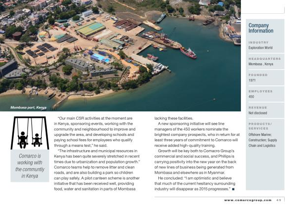 Growth will be key both to Comacro Group ’ s commercial and social success , and Phillips is carrying positivity into the new year on the back of new lines of business being generated from Mombasa and elsewhere as in Myanmar .