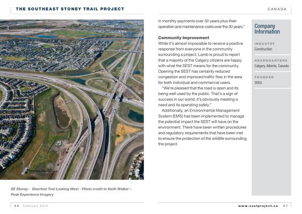 Community Improvement While it ’ s almost impossible to receive a positive response from everyone in the community surrounding a project , Lamb is proud to report that a majority of the Calgary citizens are happy with what the SEST means for the community . Opening the SEST has certainly reduced congestion and improved traffic flow in the area for both individual and commercial users .