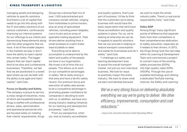 Focus on Quality and Safety The company is proud to service a cross-range of industries , many of which are household brands . Kings is staffed with professional drivers , sales , administration and operational personnel who are focused solely on meeting their clients ’ requirements . Kings