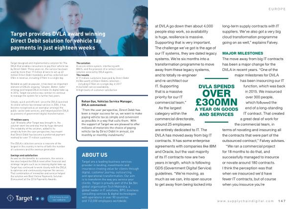 EUROPE at DVLA go down then about 4,000 people stop work , so availability is huge , resilience is massive . Supporting that is very important . The challenge we ’ ve got is the age of our IT systems , they are dated legacy systems . We ’ re six months into a transformation programme to move away from these legacy systems , and to totally re-engineer and re-architect our IT . Supporting that is a massive priority for our IT commercial team .” As the largest category within the commercial directorate , around 25 employees are entirely dedicated to IT . The DVLA has moved away from big IT contracts . It has some enterprise agreements with companies like IBM and Oracle , but the vast majority of its IT contracts now are two years in length , which is following GDS ( Government Digital Service ) guidelines . “ We ’ re moving , as much as we can , into open source to get away from being locked into