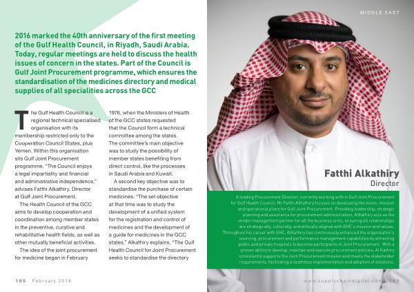 The Gulf Health Council is a regional technical specialised organisation with its membership restricted only to the Cooperation Council States , plus Yemen . Within this organisation sits Gulf Joint Procurement programme . “ The Council enjoys a legal impartiality and financial and administrative independence ,” advises Fatthi Alkathiry , Director at Gulf Joint Procurement .