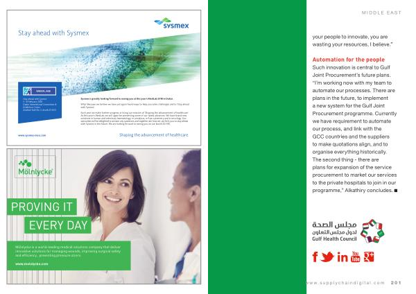 Such innovation is central to Gulf Joint Procurement ’ s future plans . “ I ’ m working now with my team to automate our processes . There are plans in the future , to implement a new system for the Gulf Joint Procurement programme . Currently we have requirement to automate our process , and link with the GCC countries and the suppliers to make quotations align , and to organise everything historically . The second thing - there are plans for expansion of the service procurement to market our services to the private hospitals to join in our programme ,” Alkathiry concludes .