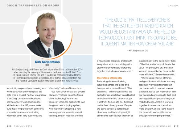 Kirk Serjeantson joined Dicom as Chief Information Officer in September 2014 after spending the majority of his career in the transportation IT field . Prior to Dicom , he held several CIO and IT leadership positions including Director of Technology Development at Purolator . Prior to Purolator , Serjeantson was the National Operations Systems Manager at Loomis Courier Service .