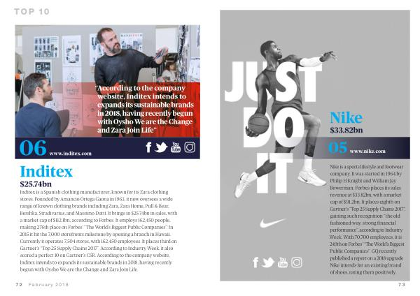 Inditex is a Spanish clothing manufacturer , known for its Zara clothing stores . Founded by Amancio Ortega Gaona in 1963 , it now oversees a wide range of known clothing brands including Zara , Zara Home , Pull & Bear , Bershka , Stradivarius , and Massimo Dutti . It brings in $ 25.74bn in sales , with a market cap of $ 112.1bn , according to Forbes . It employs 162,450 people , making 276th place on Forbes ’ “ The World ’ s Biggest Public Companies ”. In 2015 it hit the 7,000 storefronts milestone by opening a branch in Hawaii . Currently it operates 7,504 stores , with 162,450 employees . It places third on Gartner ’ s “ Top 25 Supply Chains 2017 ”. According to Industry Week , it also scored a perfect 10 on Gartner ’ s CSR . According to the company website , Inditex intends to expands its sustainable brands in 2018 , having recently begun with Oysho We are the Change and Zara Join Life .