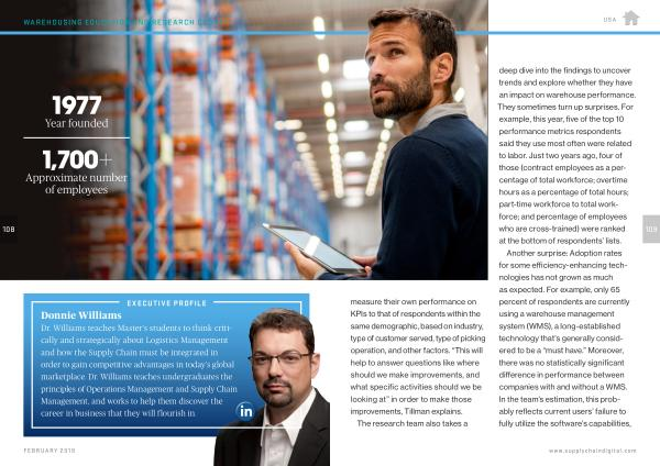 The research team also takes a deep dive into the findings to uncover trends and explore whether they have an impact on warehouse performance . They sometimes turn up surprises . For example , this year , five of the top 10 performance metrics respondents said they use most often were related to labor . Just two years ago , four of those ( contract employees as a percentage of total workforce ; overtime hours as a percentage of total hours ; part-time workforce to total workforce ; and percentage of employees who are cross-trained ) were ranked at the bottom of respondents ’ lists .
