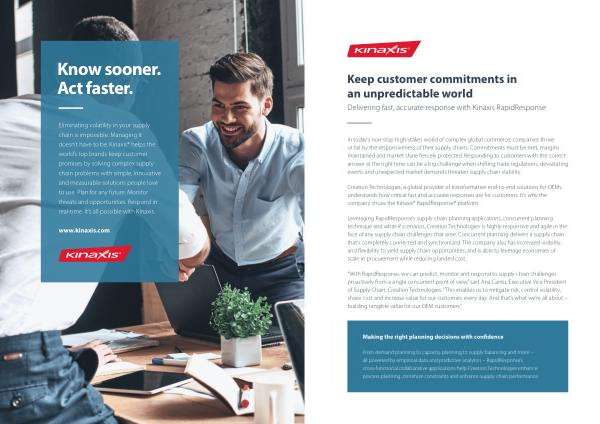 Creation Technologies , a global provider of transformative end-to-end solutions for OEMs , understands how critical fast and accurate responses are for customers . It ’ s why the company chose the Kinaxis ® RapidResponse ® platform .