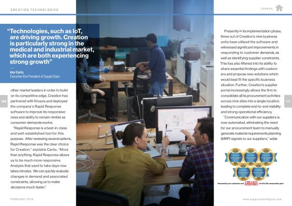 Presently in its implementation phase , three out of Creation ’ s nine business units have utilized the software and witnessed significant improvements in responding to customer demands , as well as identifying supplier constraints . This has also filtered into its ability to share essential findings with customers and propose new solutions which would best fit the specific business situation . Further , Creation ’ s supplier portal increasingly allows the firm to consolidate all its procurement activities across nine sites into a single location , leading to complete end-to-end visibility and strong operational efficiency .