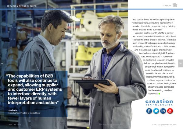 Creation partners with OEMs to deliver and scale the results that matter most to them – across the entire product lifecycle . To achieve such impact , Creation promotes technology leadership , cross-functional collaboration , and a responsive supply chain network founded on a robust digital infrastructure . Working hand in hand with its customers Creation provides tailored supply chain solutions to bolster their market competitiveness . Creation will continue to invest in its workforce and deploy innovative digital tools ; continue to grow , continue to lead , and deliver the high level of performance demanded by the evolving needs of its clients .