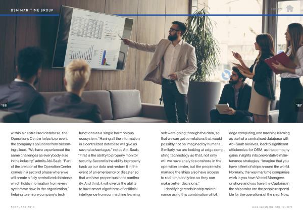 166 within a centralised database , the Operations Centre helps to prevent the company ’ s solutions from becoming siloed . “ We have experienced the same challenges as everybody else in the industry ,” admits Abi-Saab . “ Part of the creation of the Operation Center comes in a second phase where we will create a fully centralized database , which holds information from every system we have in the organization ,” helping to ensure company ’ s tech functions as a single harmonious ecosystem . “ Having all the information in a centralized database will give us several advantages ,” notes Abi-Saab . “ First is the ability to properly monitor security . Second is the ability to properly back up our data and restore it in the event of an emergency or disaster so that we have proper business continuity . And third , it will give us the ability to have smart algorithms of artificial intelligence from our machine learning