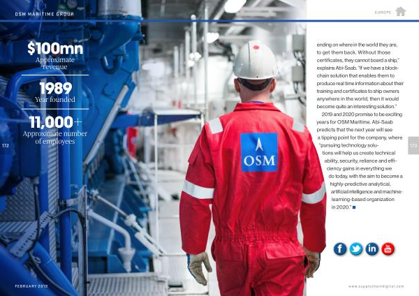 2019 and 2020 promise to be exciting years for OSM Maritime . Abi-Saab predicts that the next year will see a tipping point for the company , where “ pursuing technology solutions will help us create technical ability , security , reliance and efficiency gains in everything we do today , with the aim to become a highly-predictive analytical , artificial intelligence and machinelearning-based organization in 2020 .”
