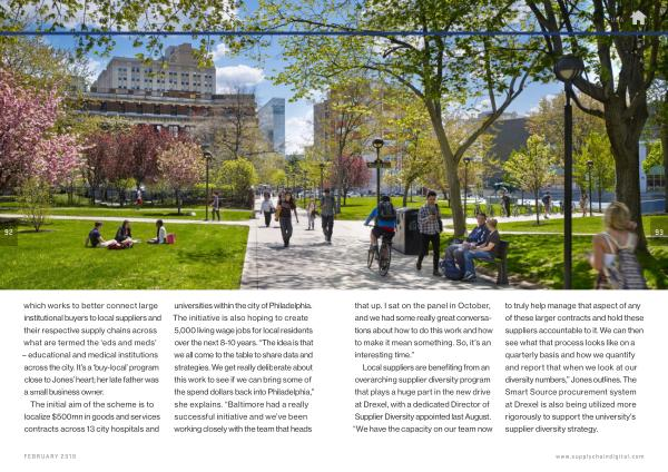 92 which works to better connect large institutional buyers to local suppliers and their respective supply chains across what are termed the ‘ eds and meds ’ – educational and medical institutions across the city . It ’ s a ‘ buy-local ’ program close to Jones ’ heart ; her late father was a small business owner .