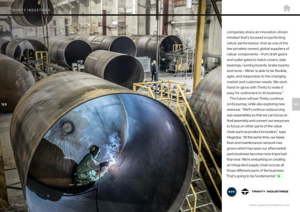 The future will see Trinity continue on its journey , while also exploring new avenues . “ We ’ ll continue outsourcing sub-assemblies so that we can focus on final assembly and convert our resources to focus on other parts of the value chain such as product innovation ,” says Hegedus . “ At the same time , our lease fleet and maintenance network has grown which has seen our aftermarket parts business become more important than ever . We ’ re embarking on creating an integrated supply chain across all those different parts of the business . That ’ s going to be fundamental .”